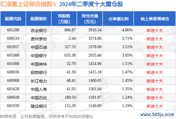 汇添富上证概述指数A为指数型-股票基金,凭证最新一期基金季报涌现,该基金钞票成立:股票占净值比94.39%,无债券类钞票,现款占净值比5.81%。基金十大重仓股如下: