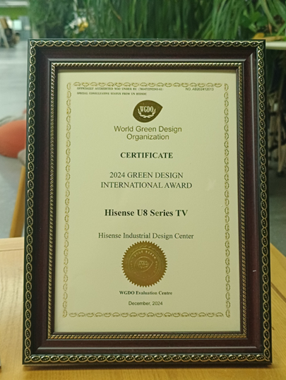 中国彩电品牌唯独 海信电视斩获“绿色贪图海外大奖”