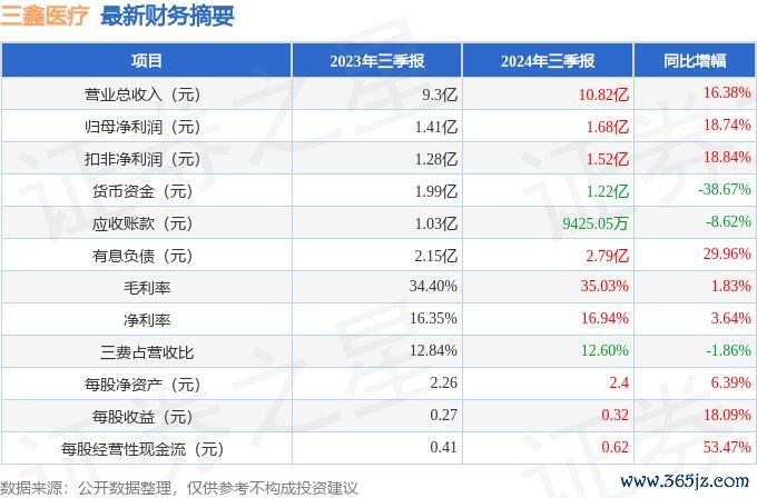 据证券之星公开数据整理,近期三鑫医疗(300453)发布2024年三季报。甩抄本敷陈期末,公司交易总收入10.82亿元开云kaiyun体育,同比上涨16.38%,归母净利润1.68亿元,同比上涨18.74%。按单季度数据看,第三季度交易总收入3.96亿元,同比上涨13.69%,第三季度归母净利润6166.69万元,同比上涨18.75%。本敷陈期三鑫医疗盈利才略上涨,毛利率同比增幅1.83%,净利率同比增幅3.64%。