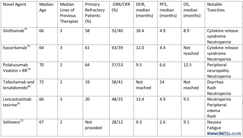 表5:用于颐养R/R DLBCL的新式药物的回想